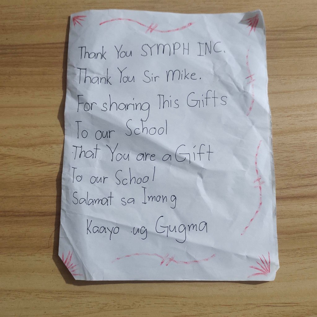 In 2023, some friends at a Technology company in Cebu called SYMPH were looking for a CSR project to donate their Christmas Fundraiser money to. I suggested that they connect with Lingatong to see how they could help address some of their needs. They provided televisions in the classrooms and gift packs for the pupils.