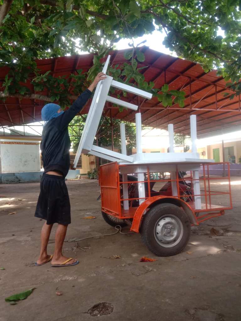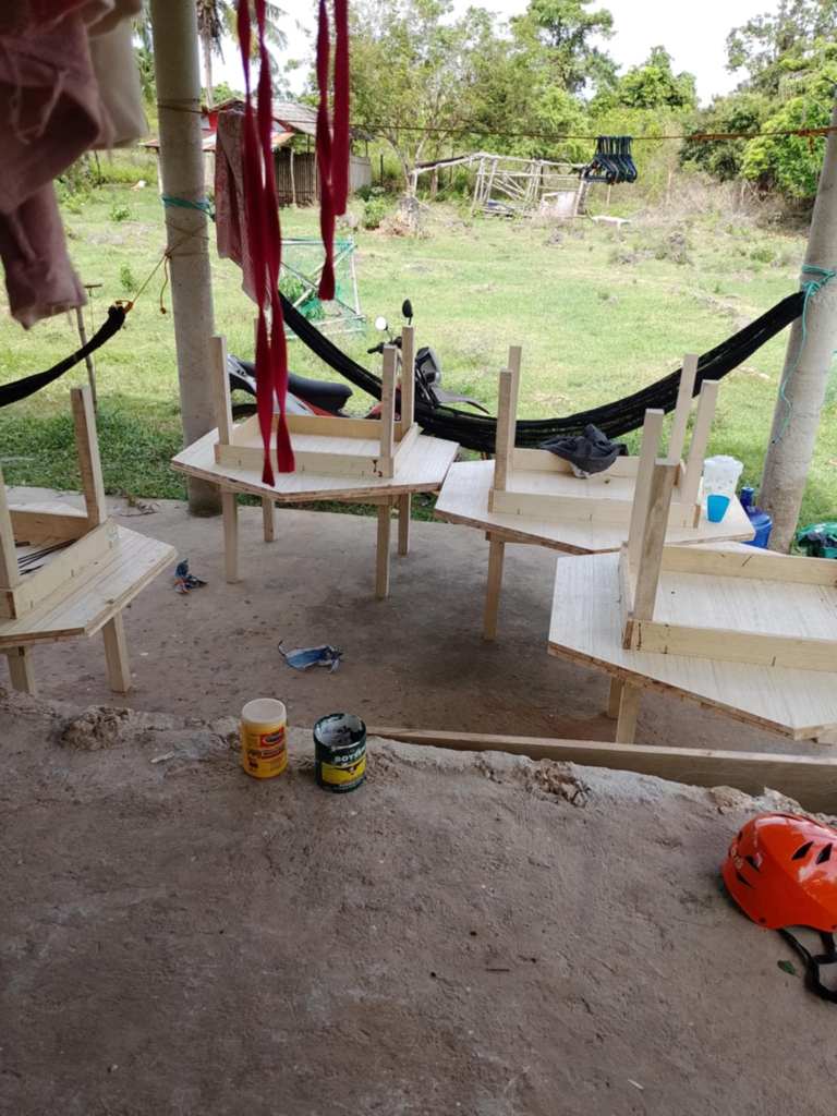 Using local labour, the manufacture of 8 customised hexagonal tables was completed at a cost of ₱15,630. The new Kinder pupils were excited to take their seats when they returned to school last June.