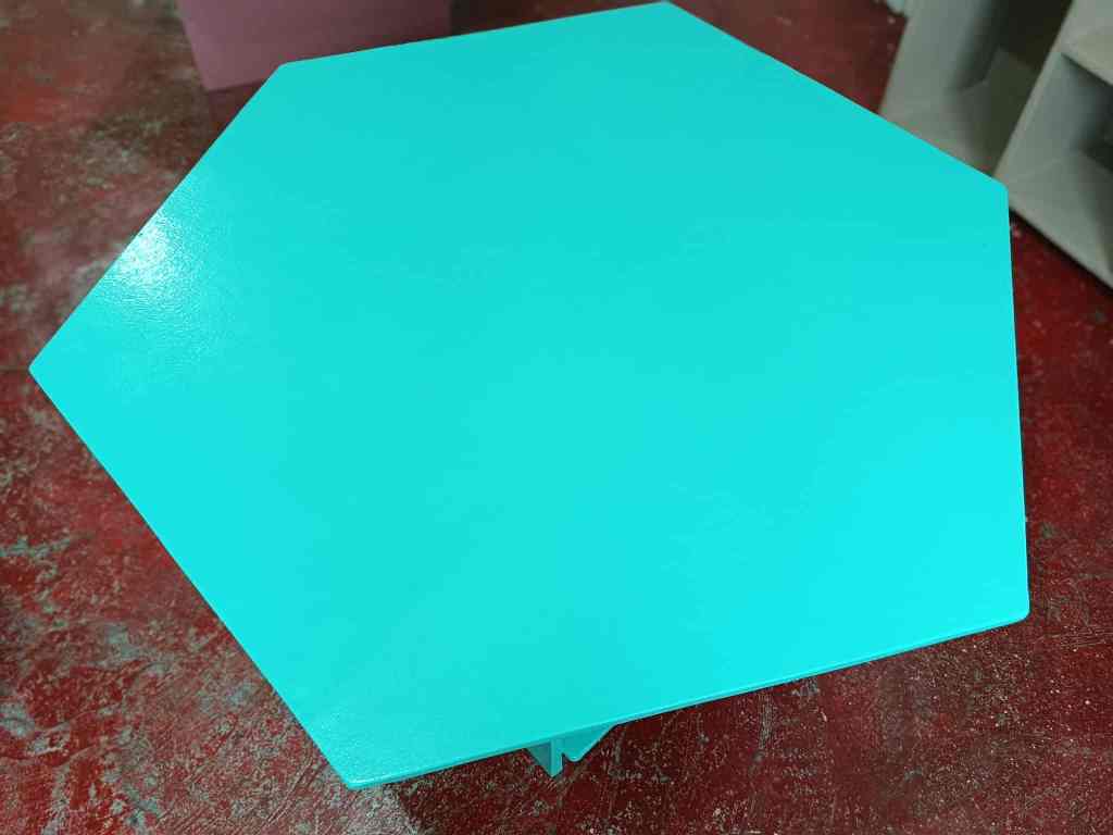 Using local labour, the manufacture of 5 customised hexagonal tables and 2 cabinets was completed at a cost of ₱20,000.