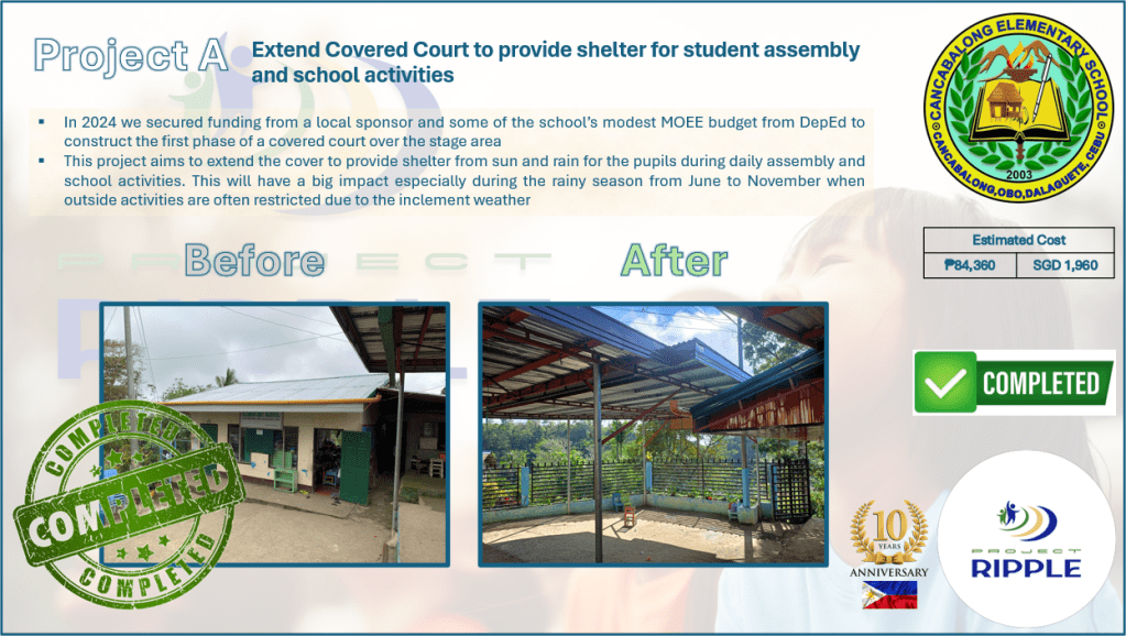 Together we continue make a difference in improving infrastructure and facilities at Cancabalong Elementary School.